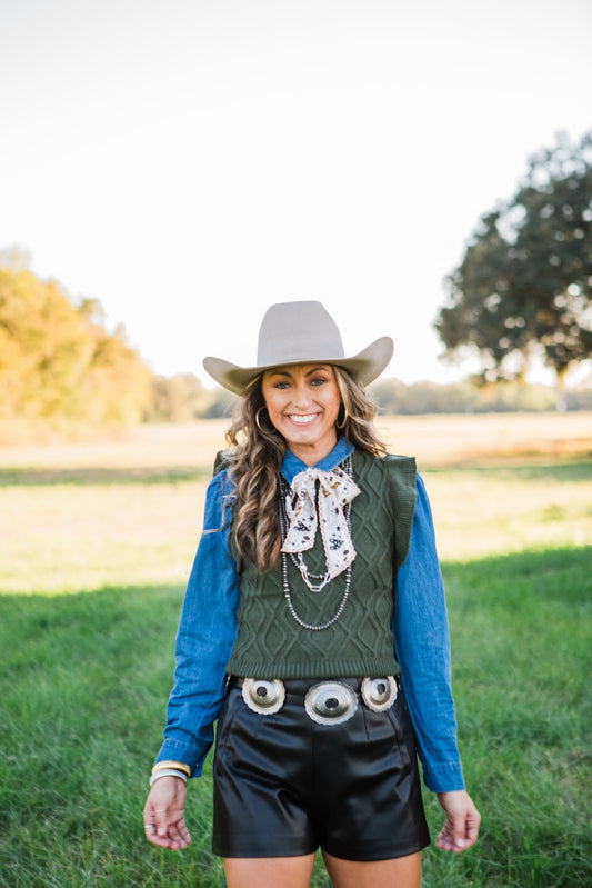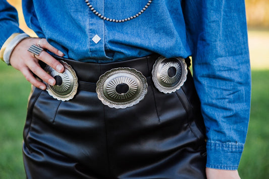 Antique Silver Oval Concho Belt- Black