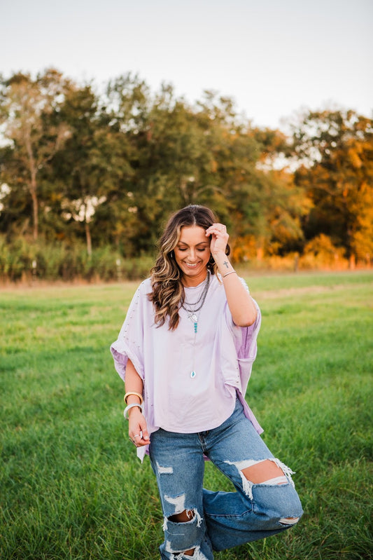 The Hallie Studded Top in Lavender