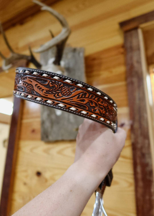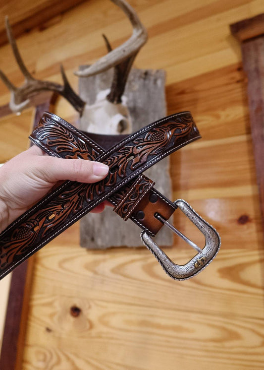 Men's tooled leather belt
