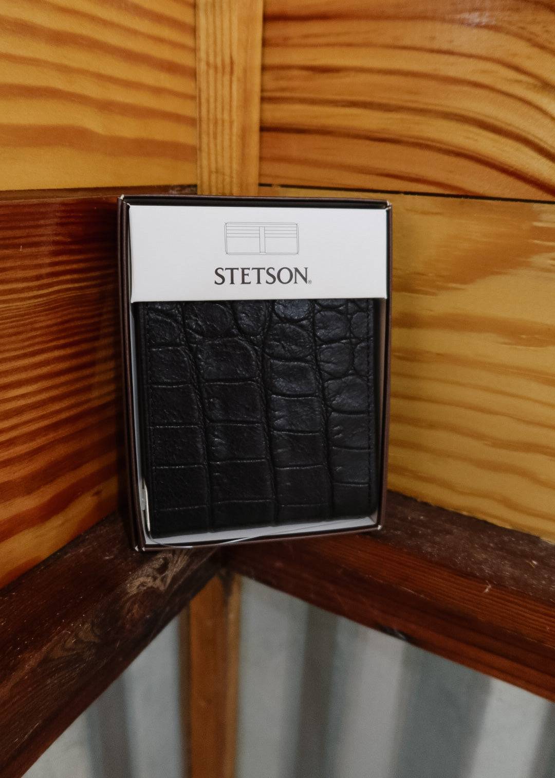 Introducing the Stetson Bifold Wallet, crafted from high-quality genuine leather in a sleek black color. Say goodbye to bulky wallets and hello to a compact and stylish option. Keep all your essentials organized and easily accessible with this bifold design.