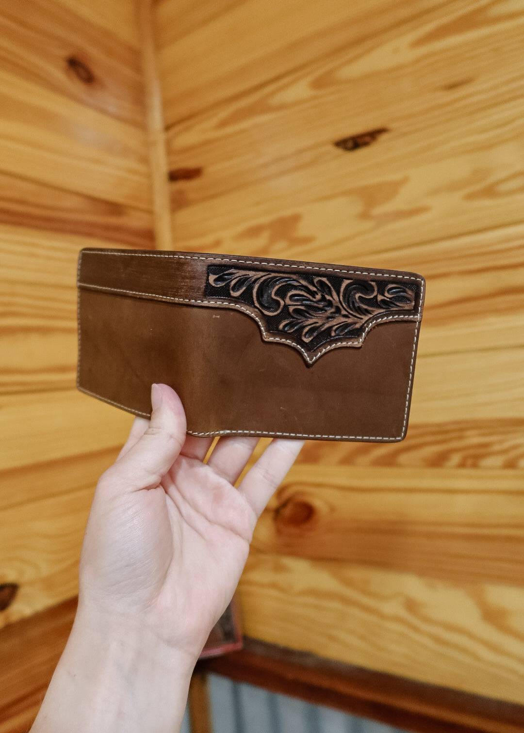 Introducing The Ames Bifold - the ultimate accessory for the stylish and practical individual. Made with high-quality leather and featuring a unique tooled design, this bifold wallet is both functional and fashionable. Keep your essentials organized and secure in a sleek and elegant tan design.